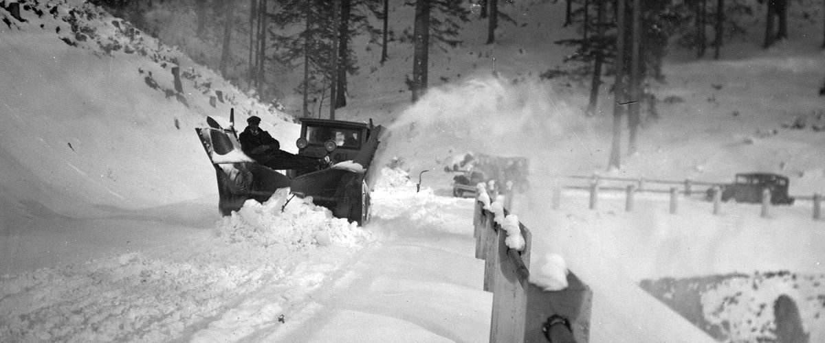 Odśnieżanie górskiej drogi na południu Polski. Rok 1930.